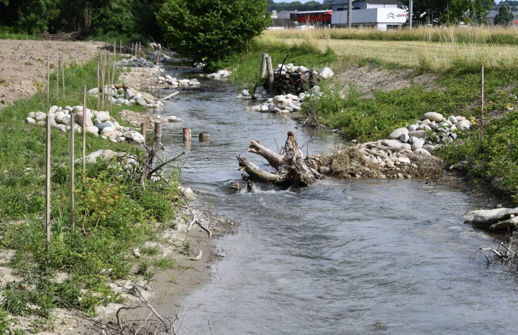 Die Ringelnatter ist wieder da! Doch sie braucht entlang des Gewässers und an den Teichen Asthaufen. Wir schaffen Sonnenplätze entlang des Baches. Einsatz mit der FNP.